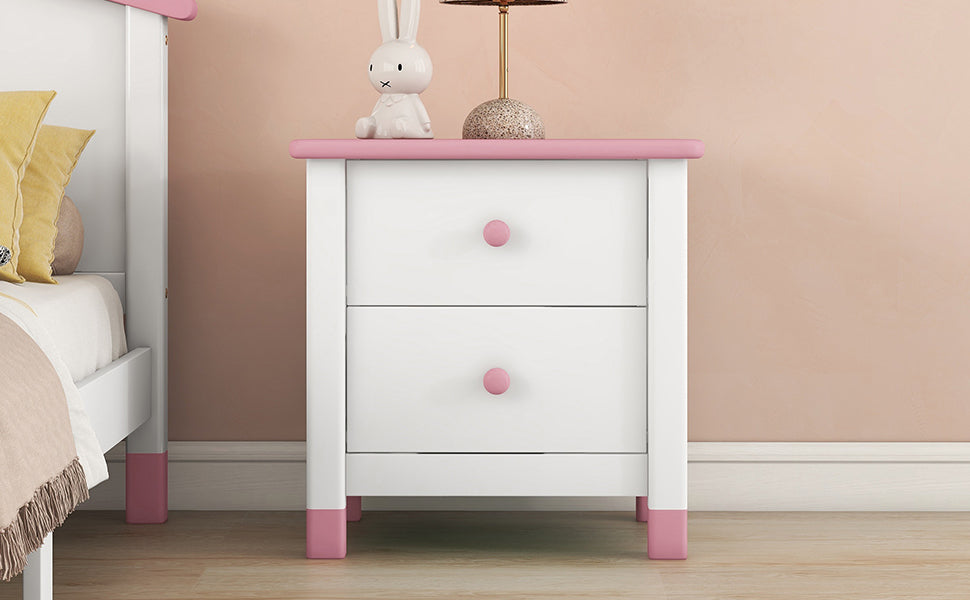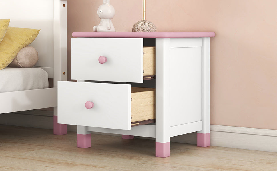 Wooden Nightstand With Two Drawers For Kids,End Table For Bedroom,White Pink White Pink Solid Wood
