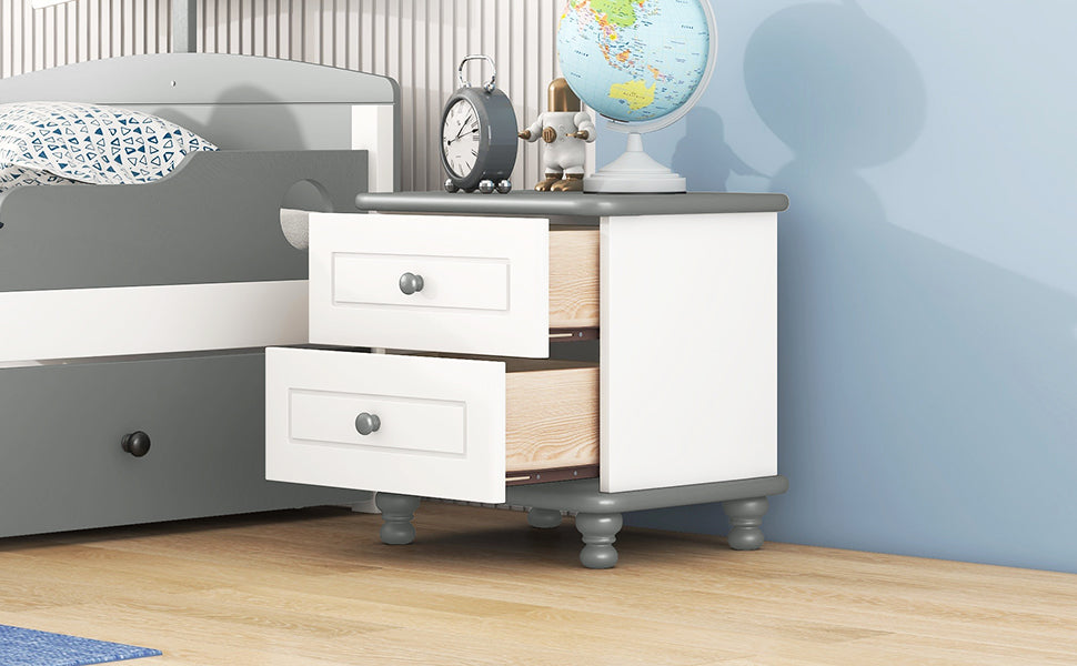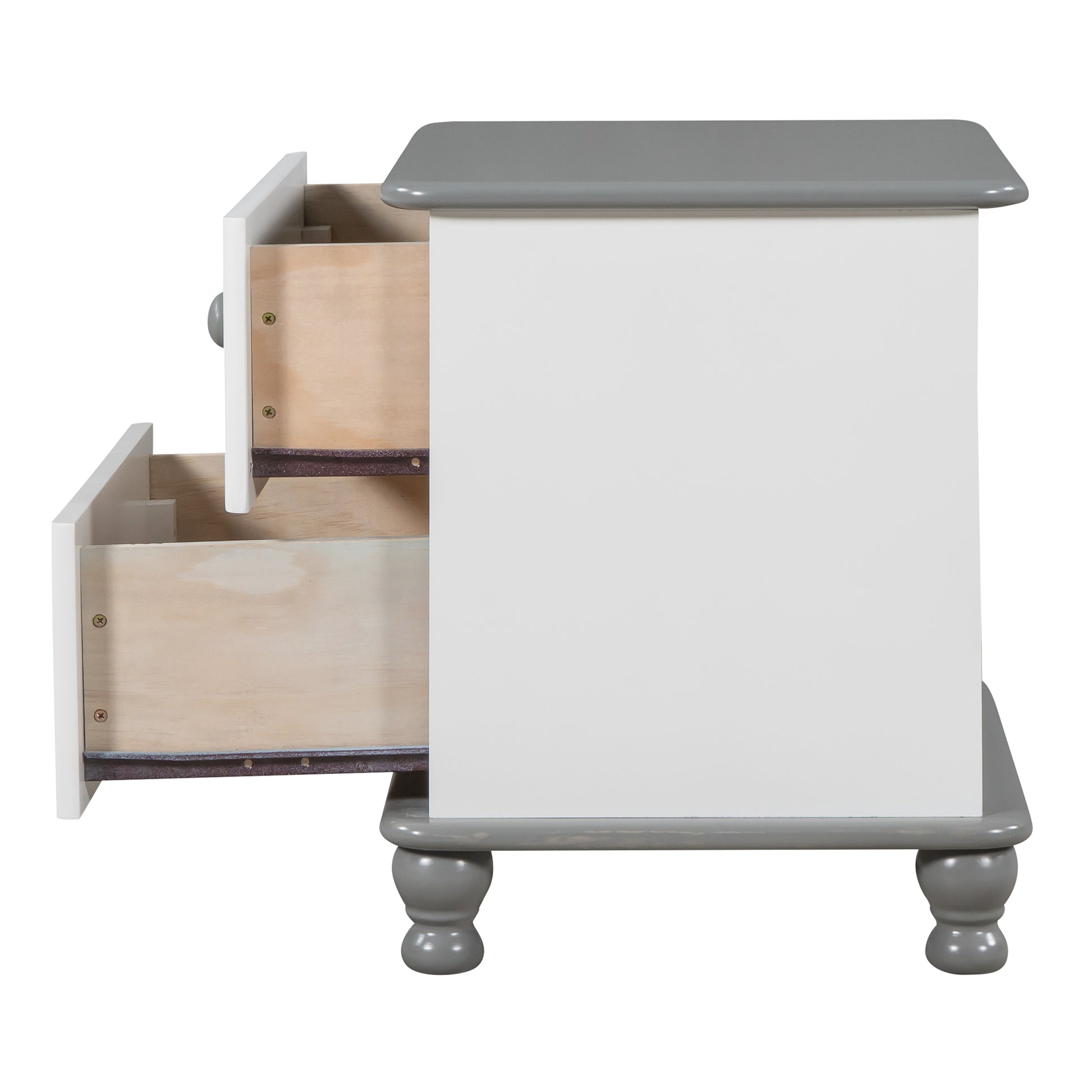 Wooden Nightstand With Two Drawers For Kids,End Table For Bedroom,White Gray Gray Solid Wood