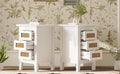 Wooden Nightstands Set Of 2 With Rattan Woven Surfaces And Three Drawers, Exquisite Elegance With Natural Storage Solutions For Bedroom, White White Particle Board
