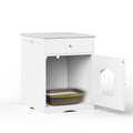 Wooden Pet House Cat Litter Box Enclosure With Drawer, Side Table, Indoor Pet Crate, Cat Home Nightstand White White Solid Wood