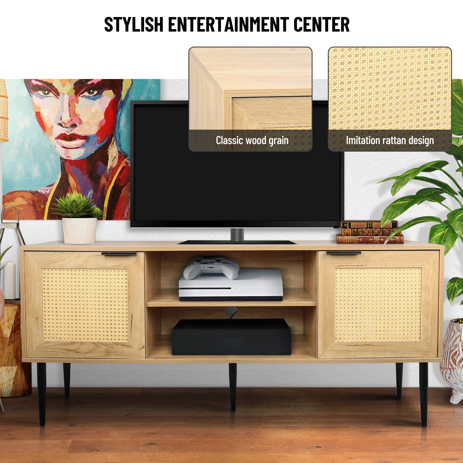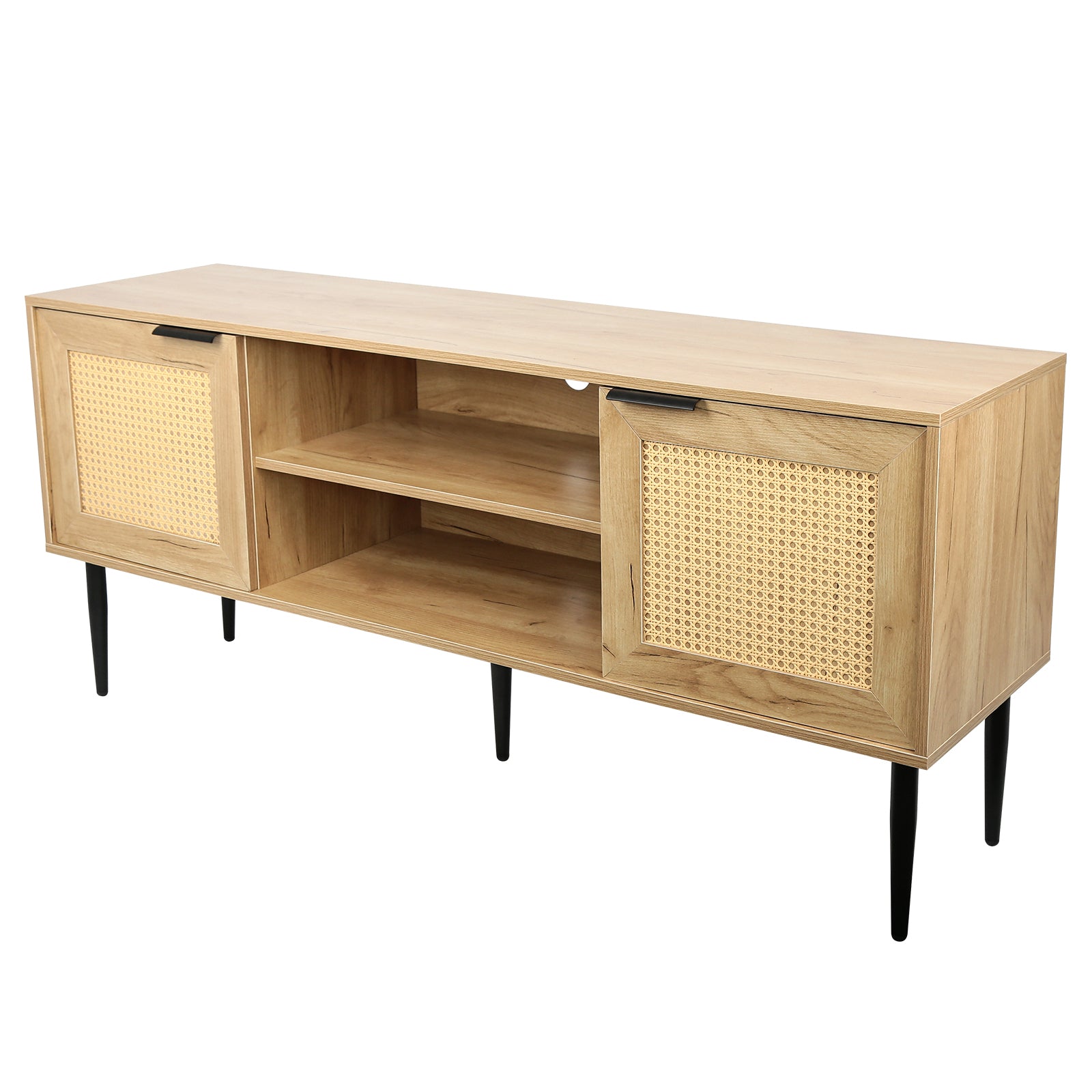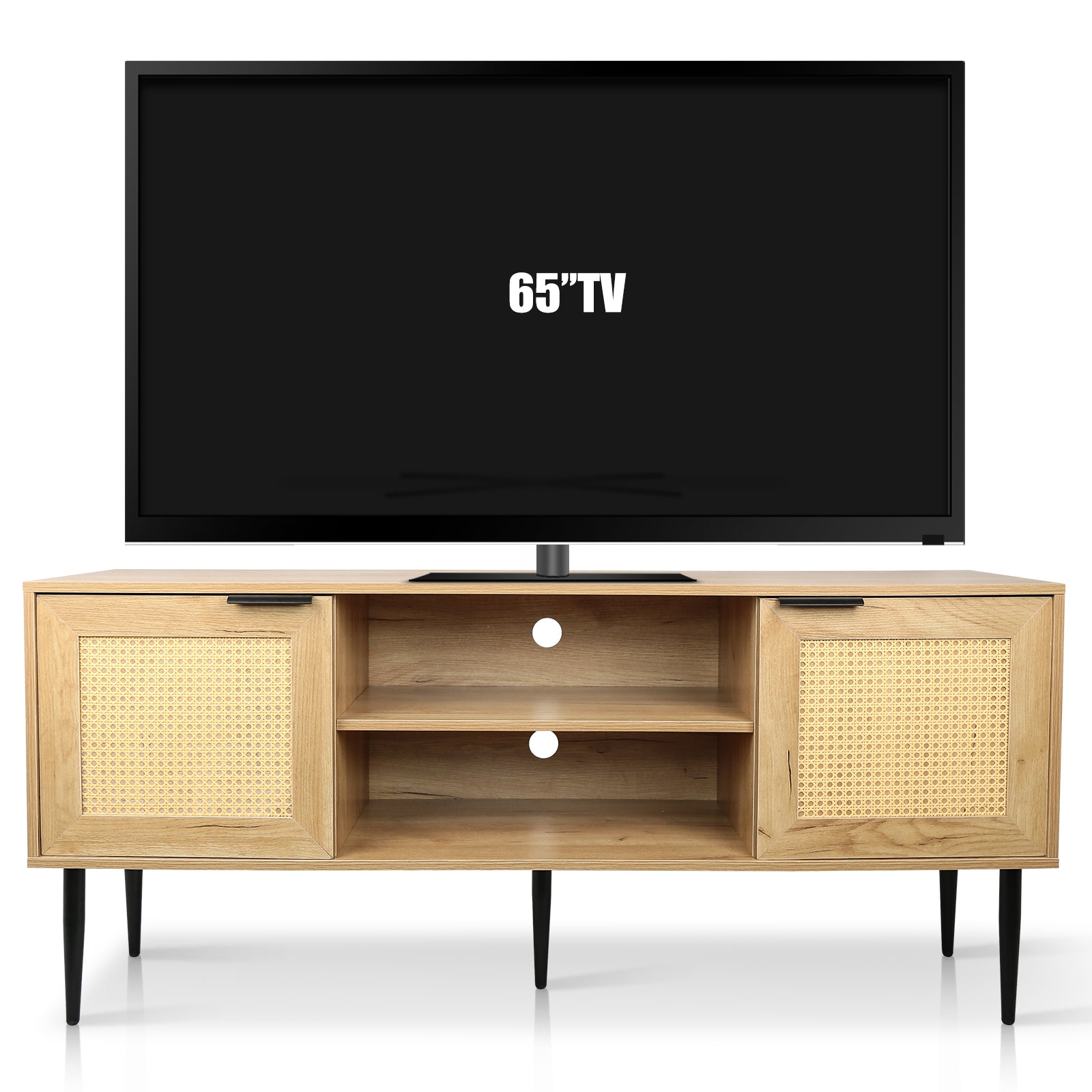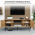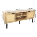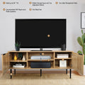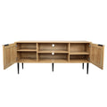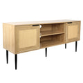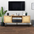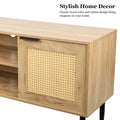 Wooden Tv Stand For Tvs Up To 65 Inches,With 2 Rattan Decorated Doors And 2 Open Shelves,Living Room Tv Console Table Wooden Entertainment Unit, Natural Color Natural Particle Board