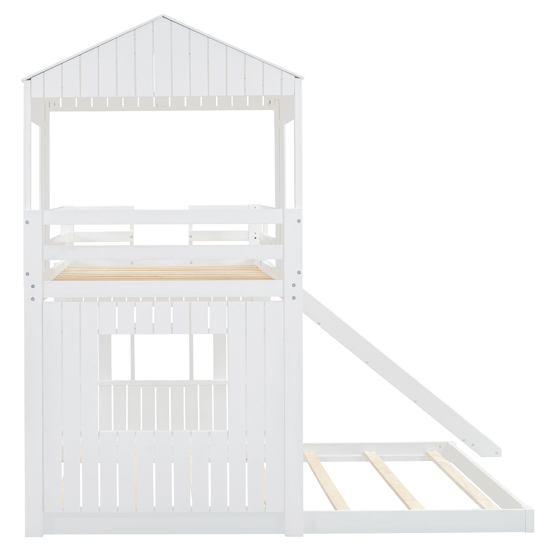 Wooden Twin Over Full Bunk Bed, Loft Bed With Playhouse, Farmhouse, Ladder, Slide And Guardrails, White Old Sku :Lt000028Aak Twin White Solid Wood