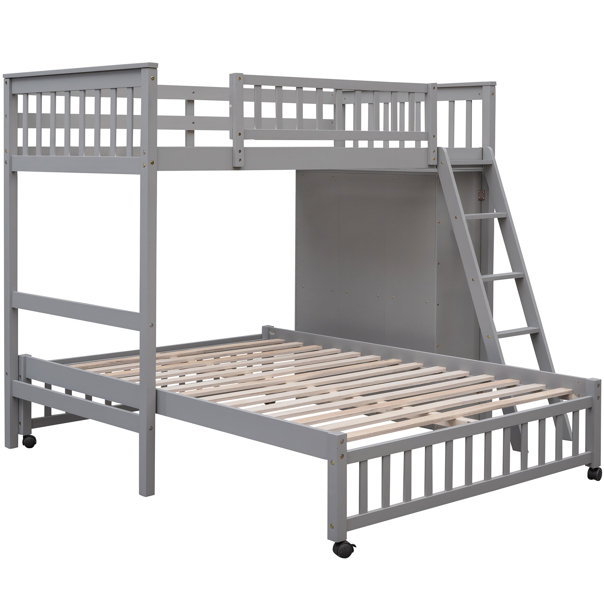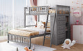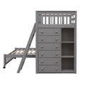 Wooden Twin Over Full Bunk Bed With Six Drawers And Flexible Shelves,Bottom Bed With Wheels,Gray Old Sku:Lp000531Aae Gray Solid Wood