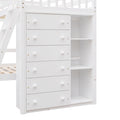 Wooden Twin Over Full Bunk Bed With Six Drawers And Flexible Shelves,Bottom Bed With Wheels,White Old Sku:Lp000531Aak White Solid Wood