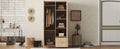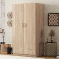 Wooden Wardrobe With Double Doors, Armoire With Hanging Rod, 5 Fixed Shelves, One Storage Drawer,Natural Natural Wood Particle Board