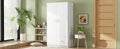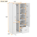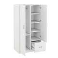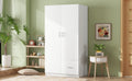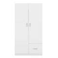 Wooden Wardrobe With Double Doors, Armoire With Hanging Rod, 5 Fixed Shelves, One Storage Drawer,White White Particle Board
