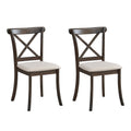Wooden X Back Dining Chairs Set Of 2, Modern Fabric Upholstered Kitchen Side 2Pc Chairs, Cross Back Rubber Wood Farmhouse Dining Room Chair,Brown Brown Wood