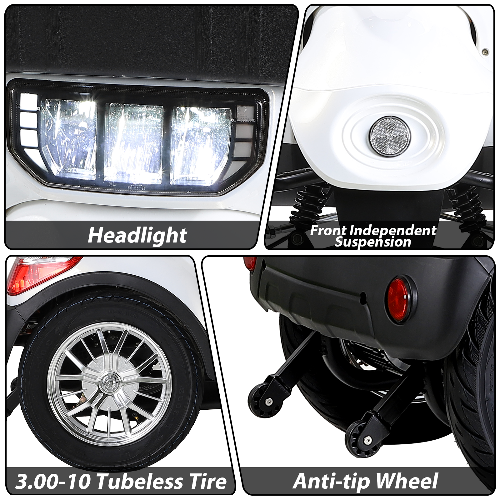 Xl3D4L Electric Mobility Recreational Travel Scooter For Adults,Mobility Scooters For Seniors, 4 Wheel Powered Mobility Scooters White Abs Pc Abs Pc