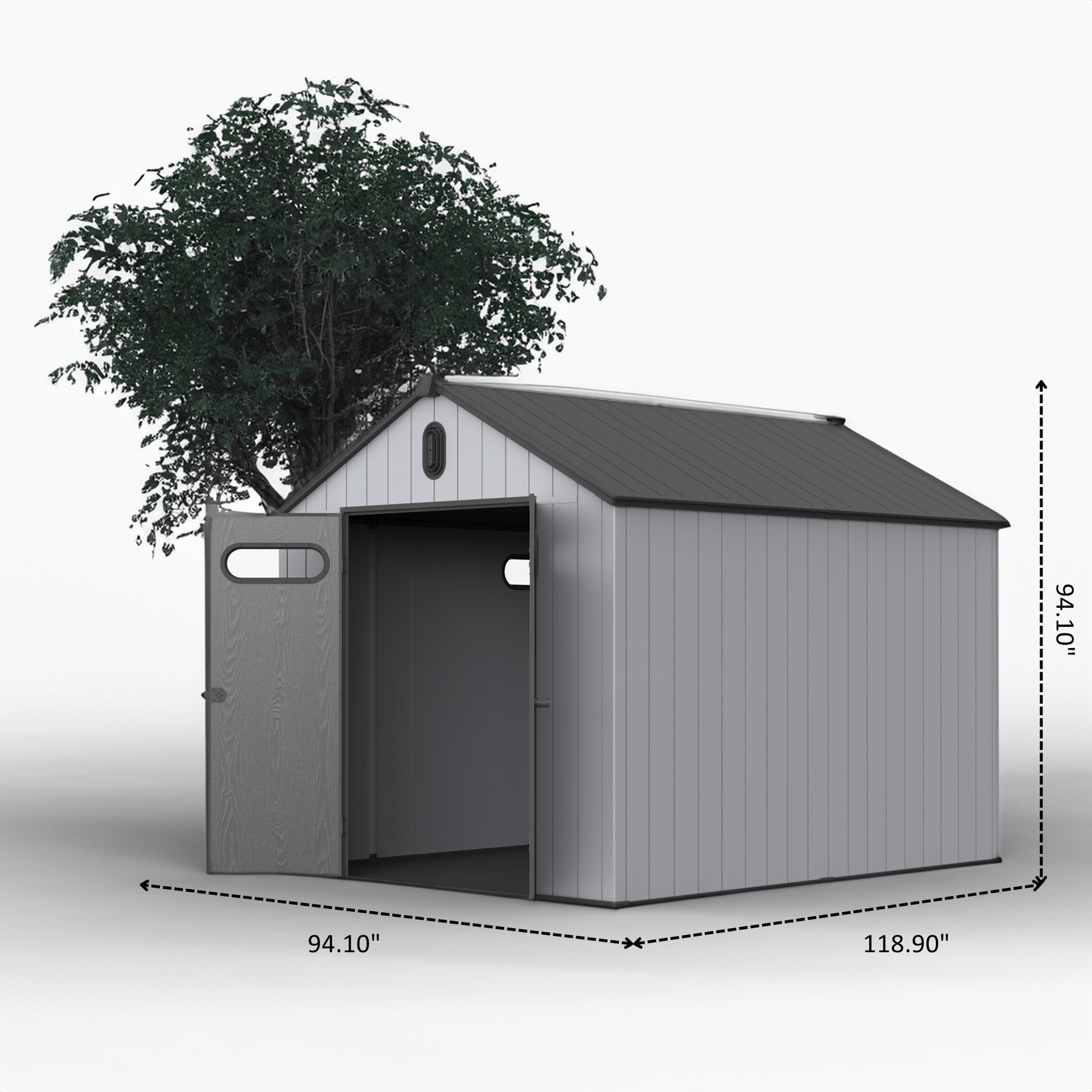 Xwt013 1 8*10Ft Plastic Storage Shed For Backyard Garden Big Spire Tool Storage Black Grey Garden & Outdoor Plastic