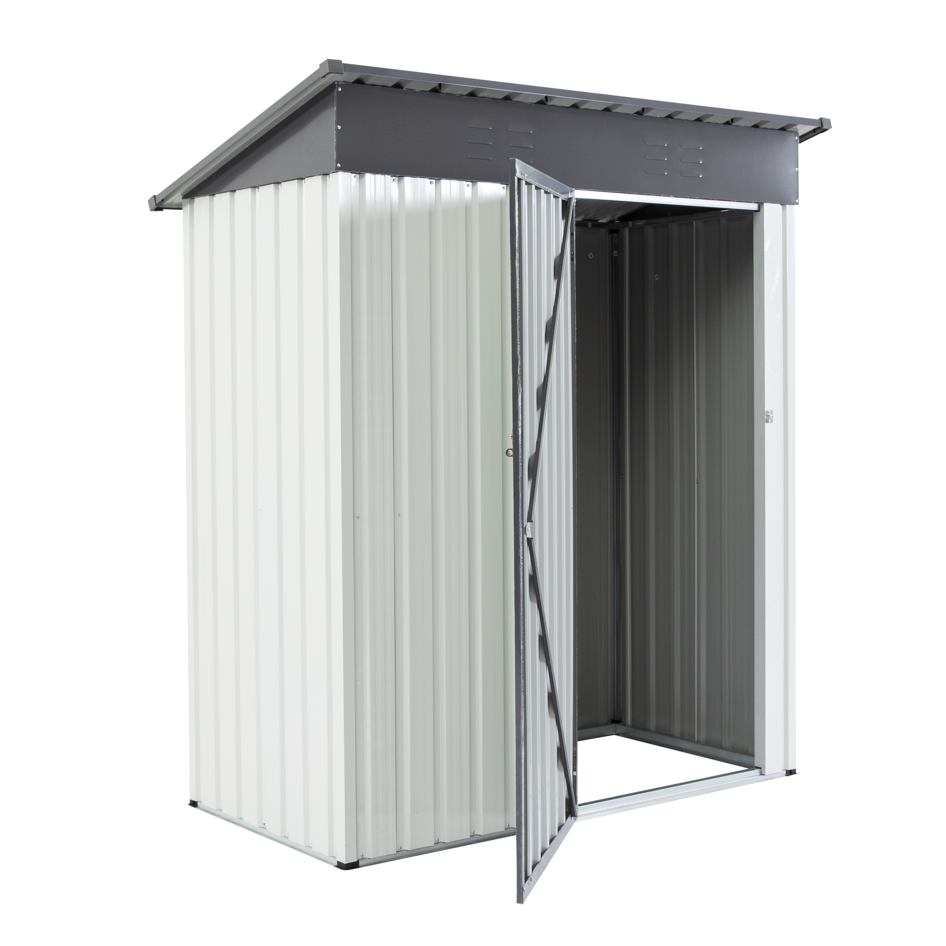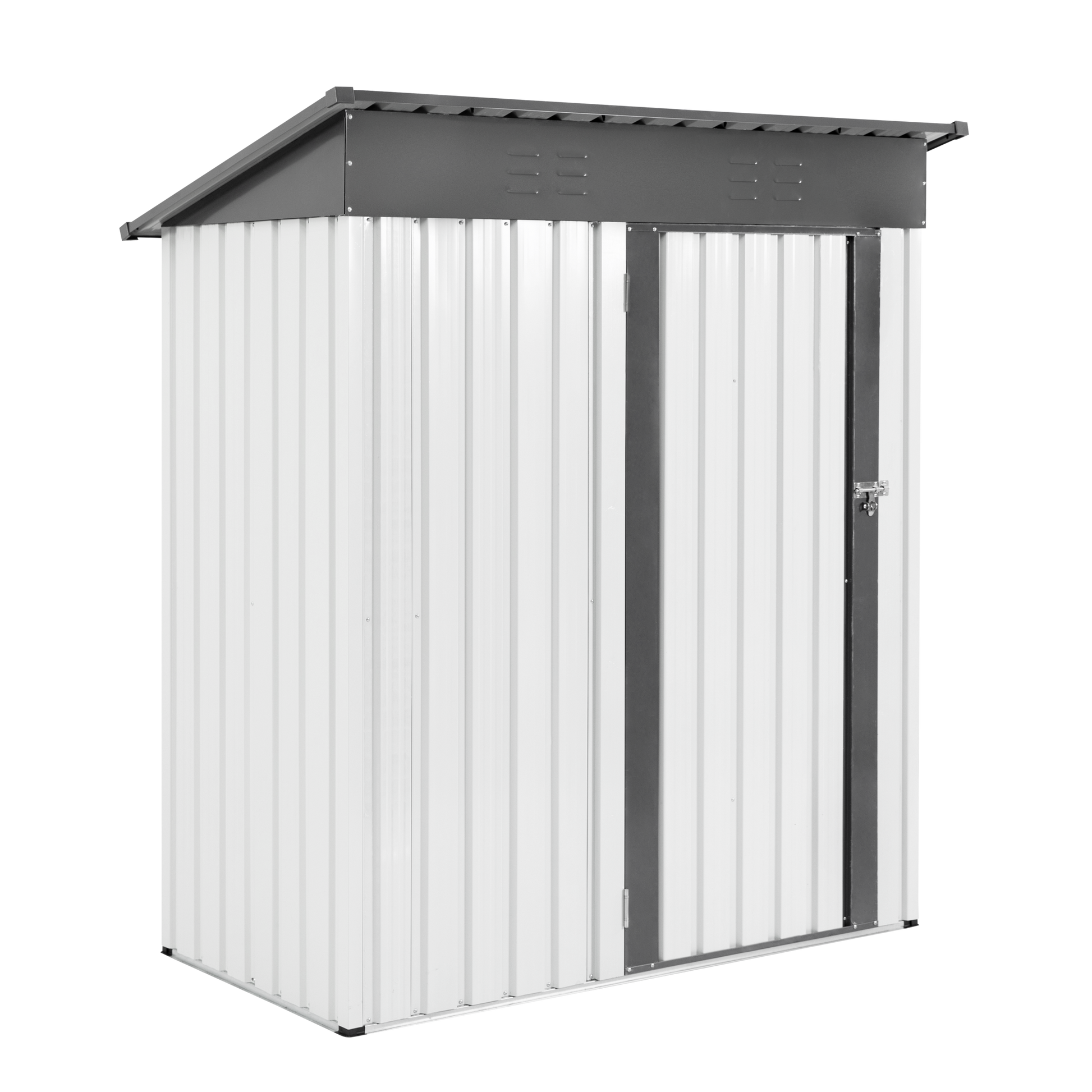 Xwt016 Garden Metal Storage Lifter Shed Gray White 5X3X6Ft Outdoor Storing Tools Rainproof Hinge Door Version Grey Metal