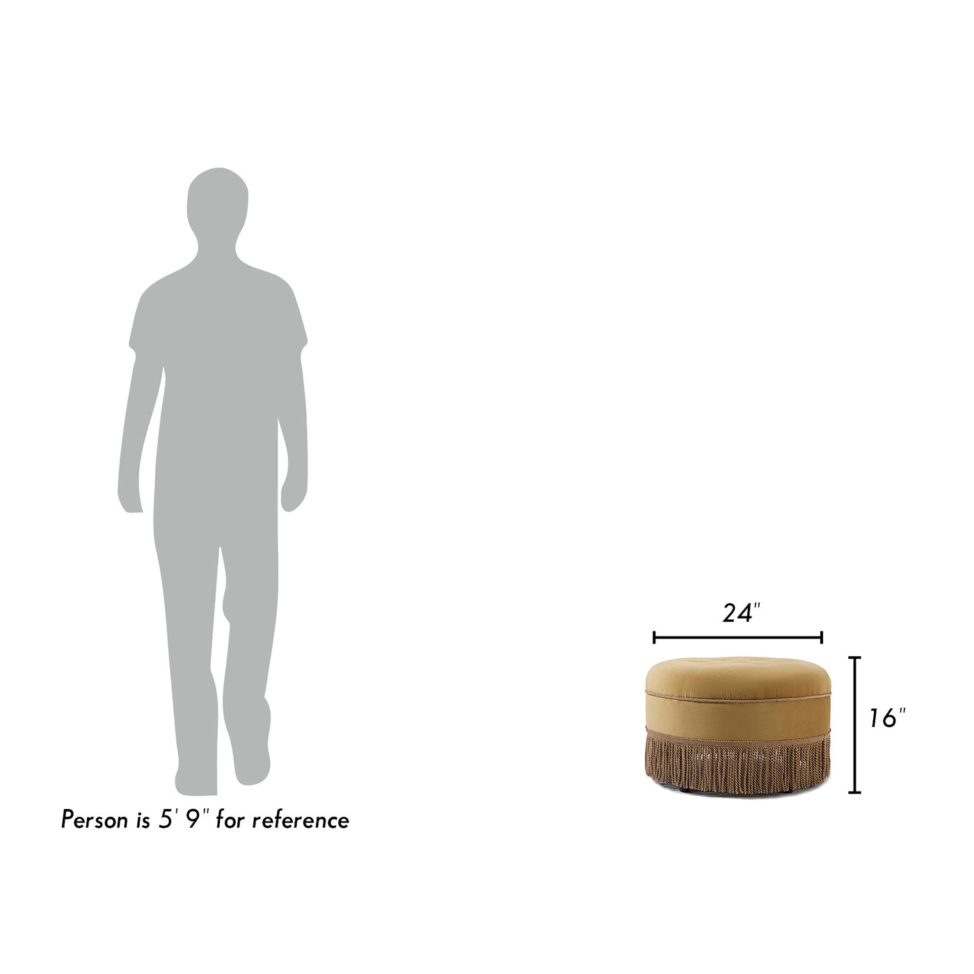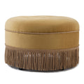 Yolanda 24" Round Upholstered Accent Ottoman, Gold Yellow Velvet With Gold Trim Yellow Foam Velvet
