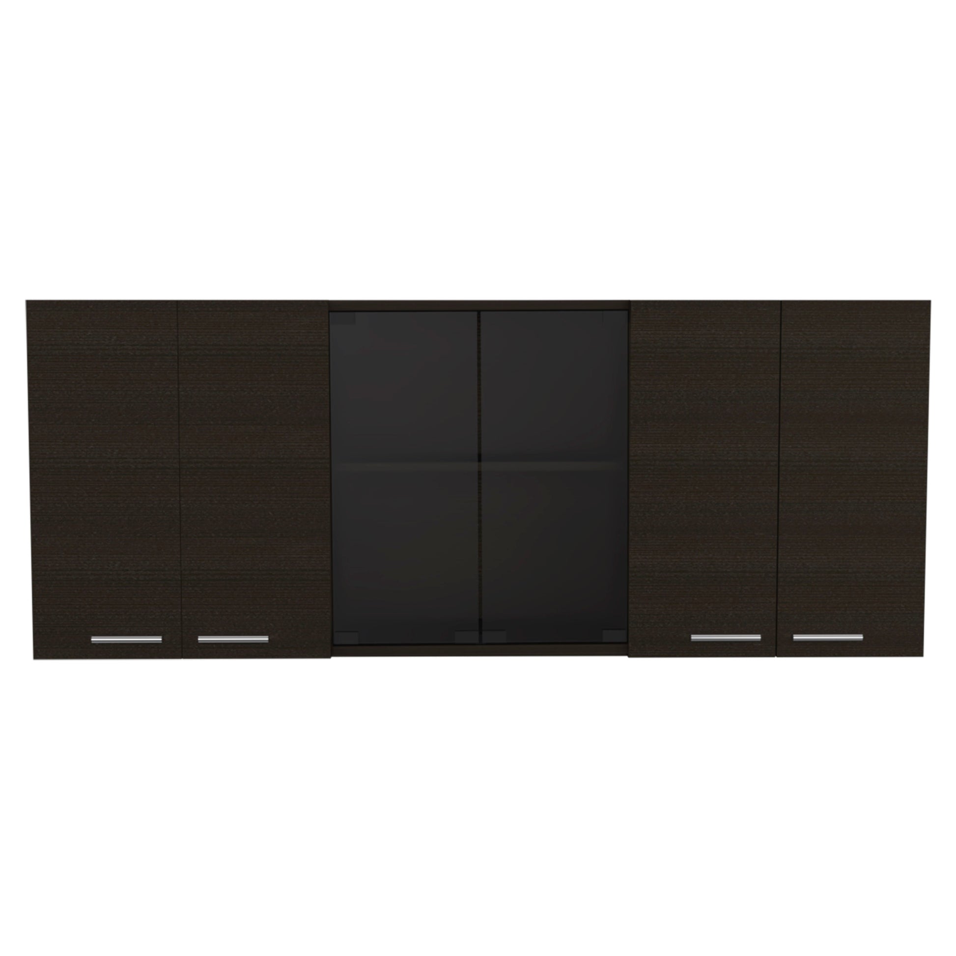 Yuma 150" Wall Cabinet, Two Close Cabinets, Two Open Shelves Black Espresso Kitchen Industrial,Modern Pine Pine Engineered Wood