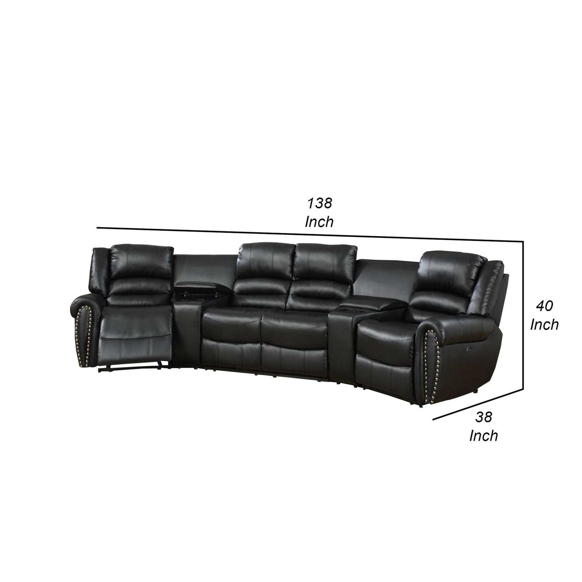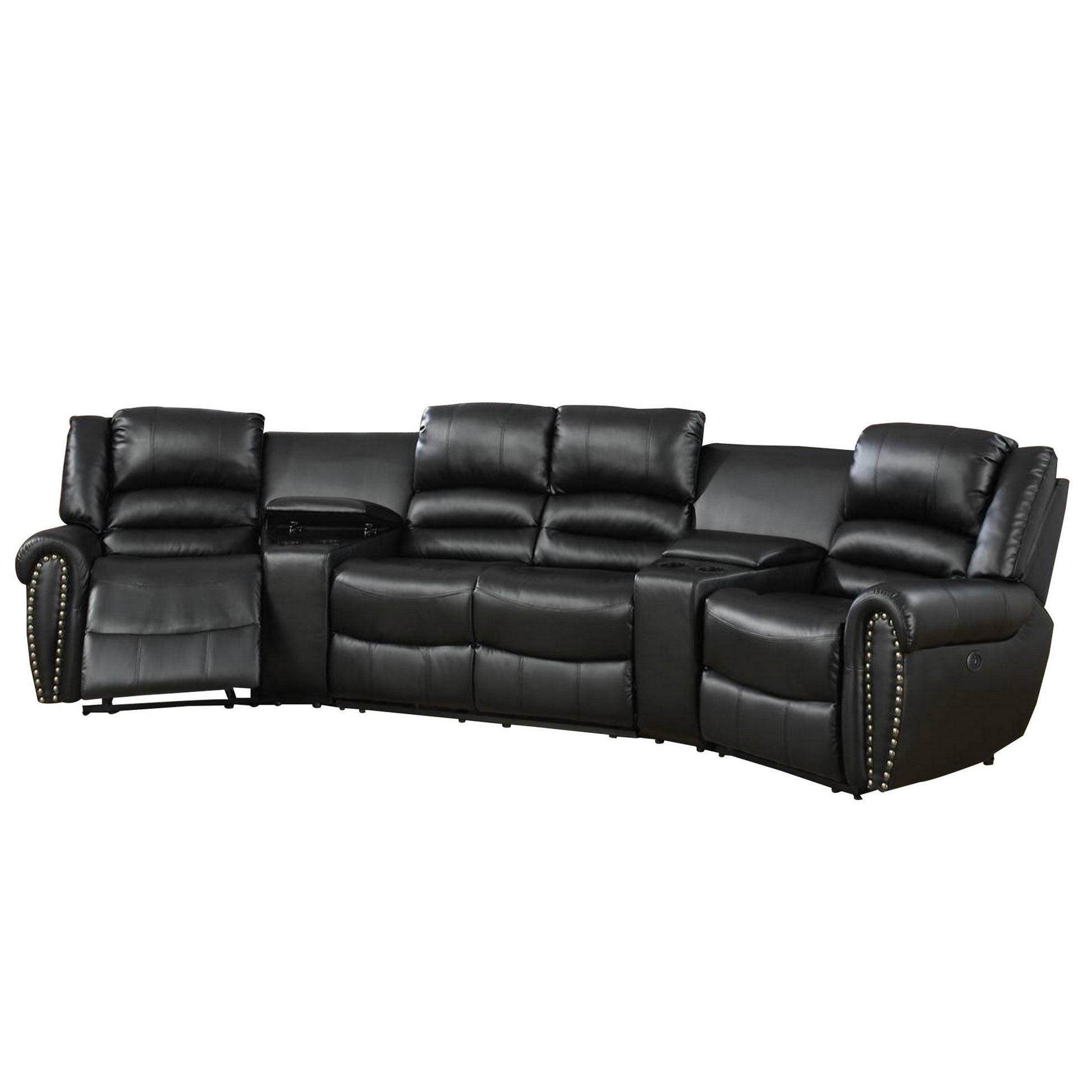 Zib Power Reclining Sectional Sofa Set, Usb Port, Bonded Leather, Jet Black Black Bonded Leather 5 Seat